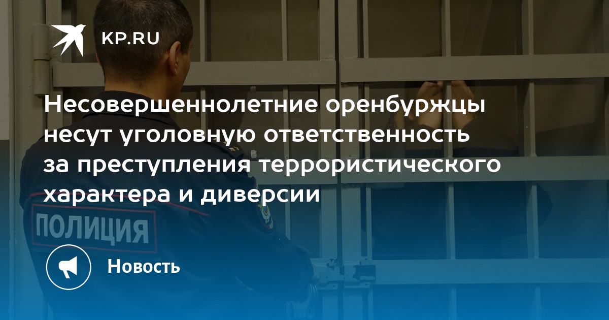 Несовершеннолетние оренбуржцы несут уголовную ответственность за преступления террористического характера и диверсии. Об этом напоминает СК России.