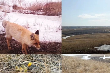 В Оренбургском заповеднике весна пришла настолько стремительно, что даже дикие животные пребывают в легком недоумении. Инспекторы застали лисицу, которая в растерянности осматривала практически растаявшую степь.