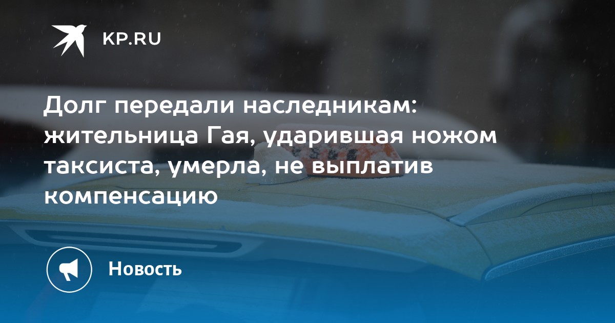 Жительница Гая, ударившая ножом таксиста, умерла, не успев компенсировать ему моральный вред. Об этом сообщает районный суд.
