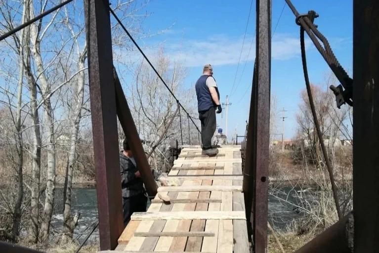 Традиция поддерживать мост в рабочем состоянии объединяет сельчан и власти ежегодно. В этот раз в рамках весеннего двухмесячника по благоустройству на переправе заменили поврежденные за зиму доски, отремонтировали входной трап, приварили перила и натянули новые ограждения.