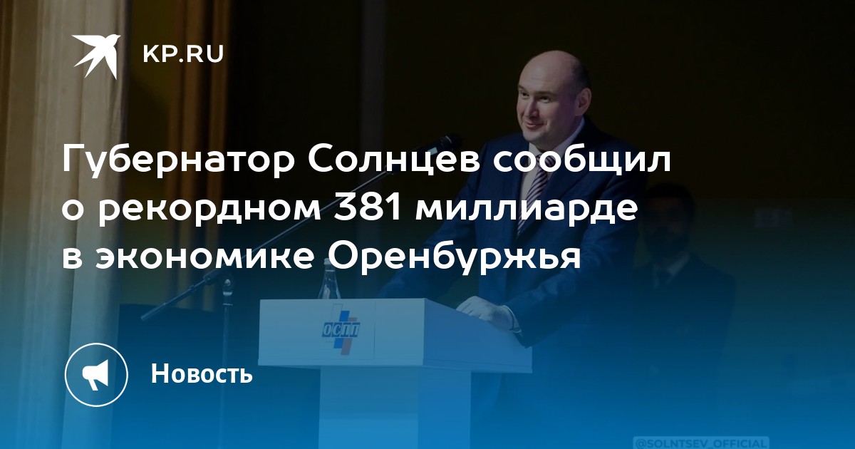 Губернатор Оренбургской области Евгений Солнцев принял участие в собрании регионального союза промышленников и предпринимателей (ОСПП), где сообщил, что по итогам 2025 года в экономику региона направили более 381 миллиарда рублей. Это на 35 миллиардов больше, чем годом ранее. Об этом «КП – Оренбурге» сообщили в правительстве области.